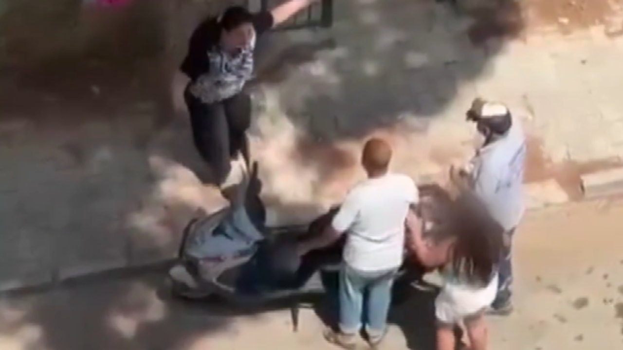 Kızın yardımına koşanlar, anneyi de sakinleştirmeye çalıştı. Anne tehditlerini sürdürünce bu kez bir kişi, motosiklete bindirdiği kızı, olay yerinden uzaklaştırmak isterken, çocuğu saçından yakalayan kadın ise onu çekip düşürmeye çalıştı.