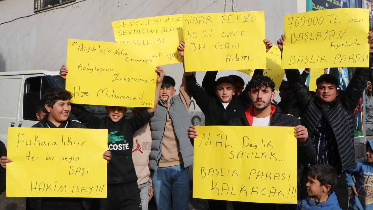 Yaklaşık 20 genç, farklı mahallelerden bir araya gelerek, evlenmek isteyenlerden yüksek meblağlarda başlık parası istenmesine tepki gösterdi. Katılımcılar, söz konusu geleneğin evlilik sürecini ciddi şekilde zorlaştırdığını ifade etti.