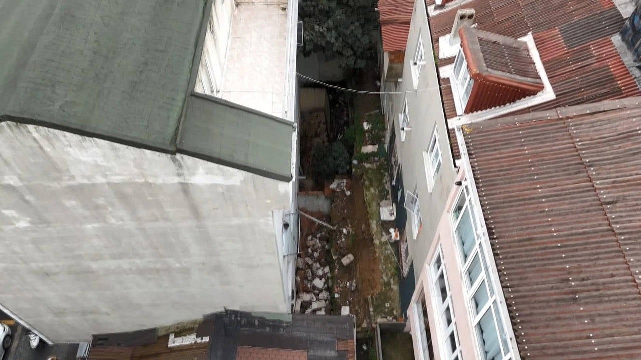 İstanbul Arnavutköy'de, iki bina arasında bulunan istinat duvarının çökmesi nedeniyle bir binada hasar oluştu.