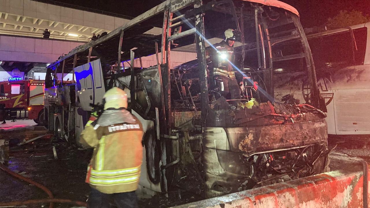 Ankara Şehirler Arası Otobüs Terminali’nde (AŞTİ) gece saatlerinde park halindeki 19 KK 454 plakalı yolcu otobüsünde henüz belirlenemeyen bir nedenle yangın çıktı.