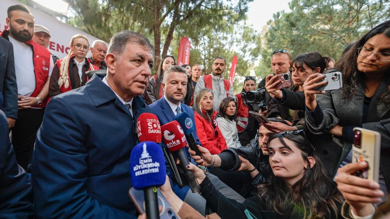Elveda Teyze’ye sarılarak desteğine teşekkür eden Başkan Tugay, “Teyzemi buraya getiren güç, ona bu itirazı yaptıran şey nedir diye düşünsünler. Yürüyerek nereden buraya gelmiş, işini bırakmış. İnsanları yaraladılar. Sokakta o kadar çok insan bu konuyla ilgili rahatsızlıklarını, üzüldüklerini dile getirdiler ki… ‘Vazgeçmeyin, direnin, yanınızdayız’ diyorlar. Sokakta insanları çağıracağım, kimin itirazı varsa gelsin burada hep beraber buna sebep olanları kınasınlar. İlla buraya gelmeleri de gerekmiyor. Toplandıkları yerden bunları protesto etsinler” ifadelerini kullandı.