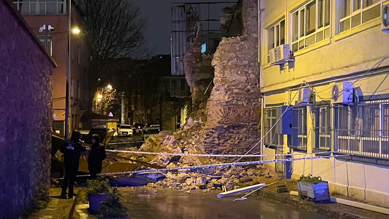 Duvarın üst kısmında kalan ve düşme tehlikesi oluşturan parçalar nedeniyle sokağın ilgili bölümü güvenlik şeridiyle kapatıldı. Olayla ilgili başlatılan inceleme ve soruşturmanın sürdüğü öğrenildi.