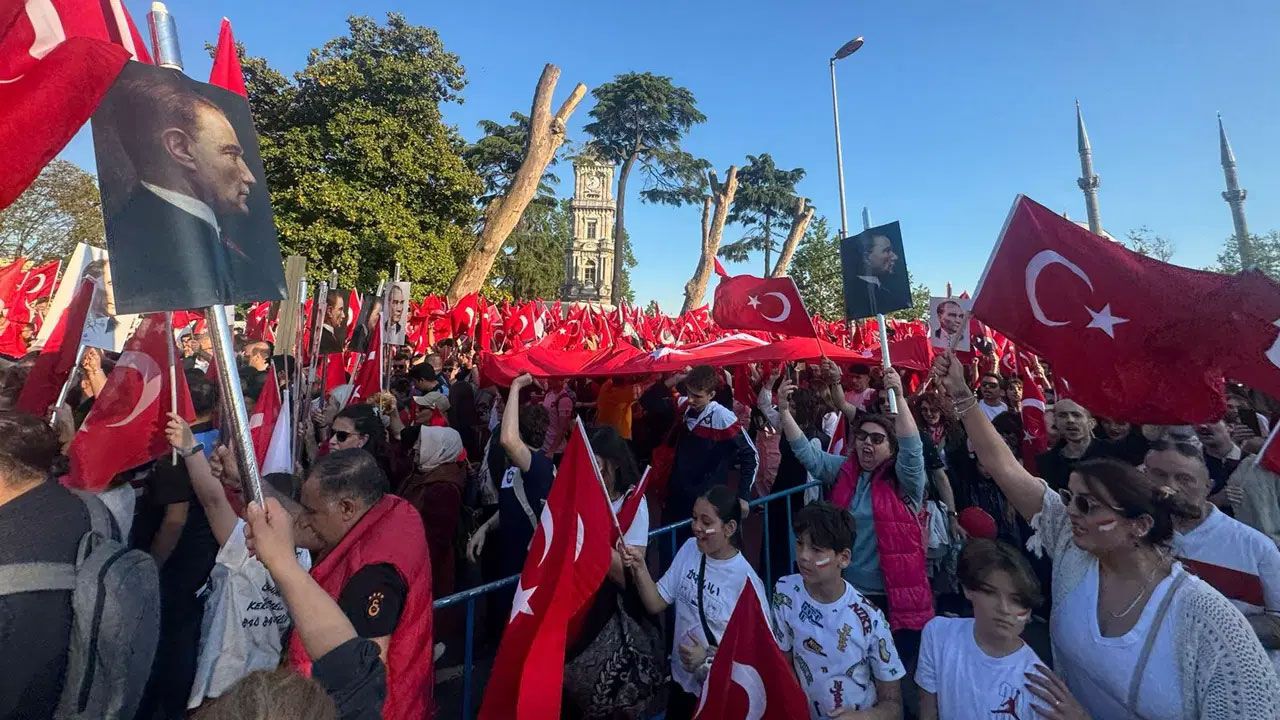 Harbiye’den katılımla daha da büyüyen kortej, “Egemenlik kayıtsız şartsız milletindir” yazılı pankart arkasında yürüdü. Coşkulu kalabalık; “Hak, hukuk, adalet”, “Kurtuluş yok tek başına ya hep beraber ya hiçbirimiz”, “Mustafa Kemal’in askerleriyiz”, “Ekrem Başkan’a özgürlük” ve “Cumhurbaşkanı İmamoğlu” sloganlarını atarak Çelik, İBB Başkanvekili Nuri Aslan ve Beşiktaş Belediye Başkanvekili Rasim şişman ile birlikte Beşiktaş Meydanı’na doğru yürüyüşe geçti.