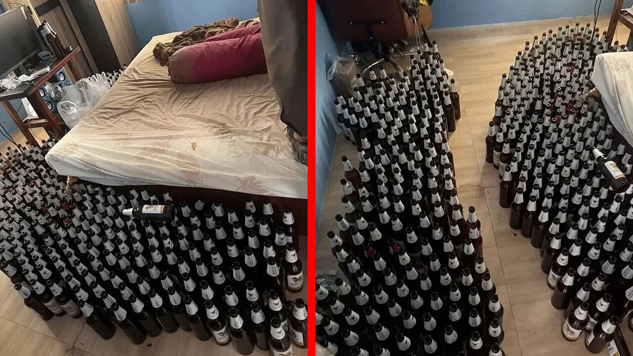 Sağlık görevlileri, adamın yatak odasında 100'den fazla boş bira şişesi buldu. Şişeler öyle bir düzende dizilmişti ki odada sadece yataktan kalkıp tekrar dönmeye yetecek kadar dar geçiş yolları bırakılmıştı.