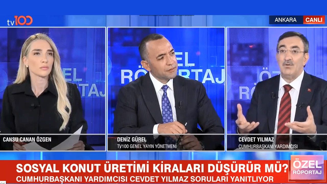 Deniz Gürel’in “Kiraları düşürür mü efendim sosyal konut projesi?” sorusu üzerine ise Cevdet Yılmaz “Elbette, hem gelir dağılımına katkı sunar hem de arzı arttırdığınız için kiraları düşürür” yanıtını verdi.