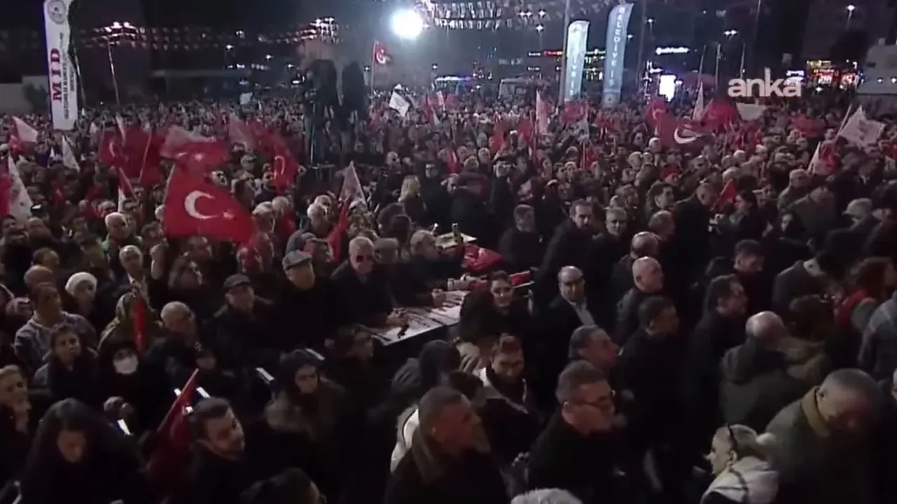 Mart 2025'ten bu yana 85'inci kez düzenlenen mitinge yurttaşların ilgisinin yoğun olduğu görüntülendi. CHP lideri Özgür Özel Bağcılar’da on binlerle buluştu.