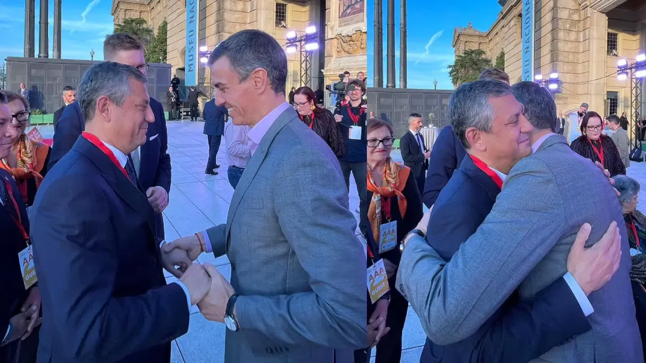 Ayrıca İspanya Başbakanı Pedro Sanchez ile de bir araya gelen Özel, karşılaştıklarında birbirine sarılırken, bir süre sohbet etti.