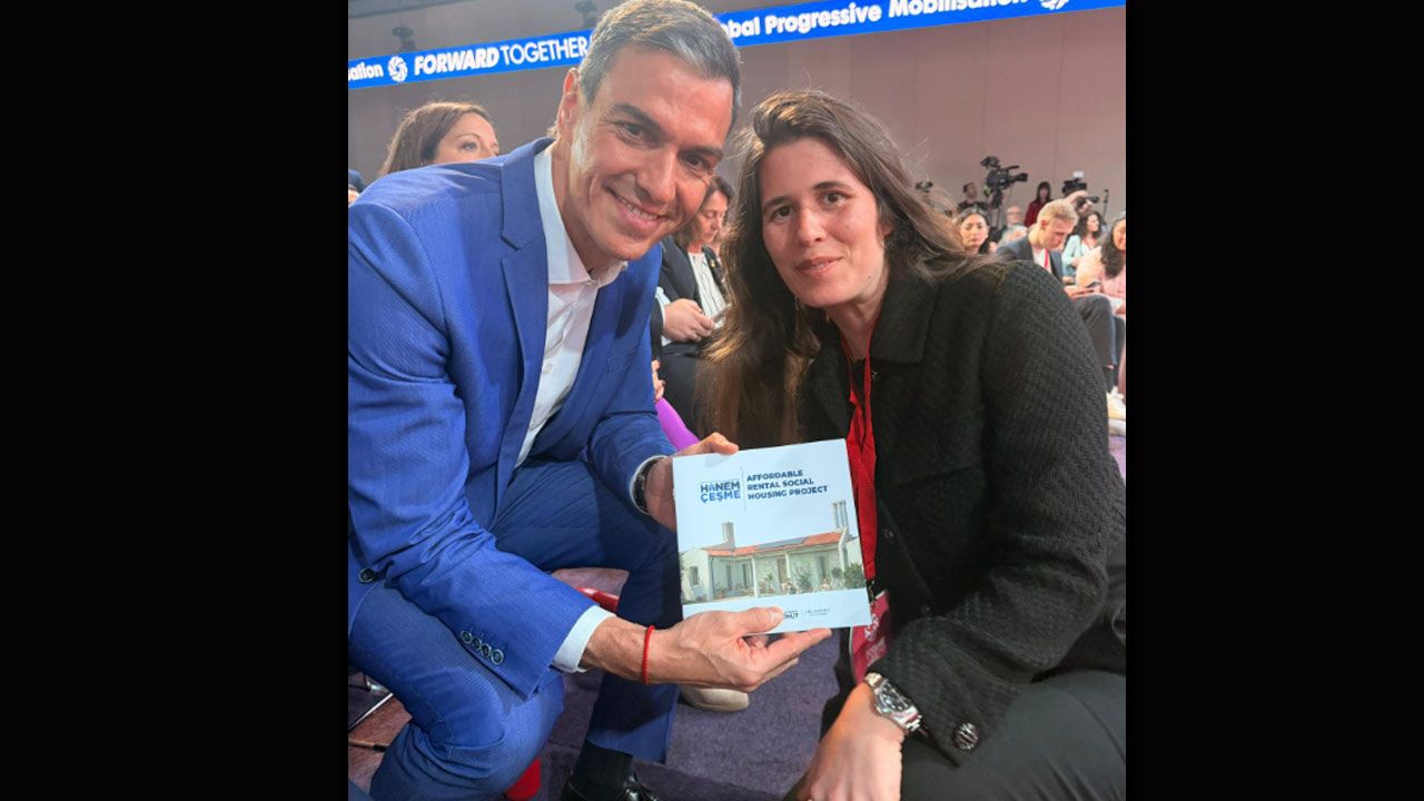 “Savaşa karşı dik duruşu ve ezilenlerle gösterdiği dayanışmayla hepimize umut veren İspanya Başbakanı Sayın Pedro Sanchez'e, Hanem Çeşme modelimizi anlatma fırsatı buldum. İspanya'nın da ana gündemlerinden biri olan barınma krizine ilişkin fikir alışverişinde bulunduk.