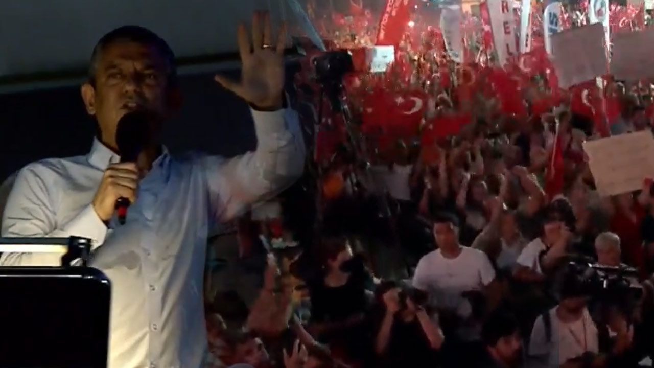 CHP Genel Başkanı Özgür Özel, Antalya'da meydanı dolduran on binlere hitap ettiği konuşmasına başladı.
