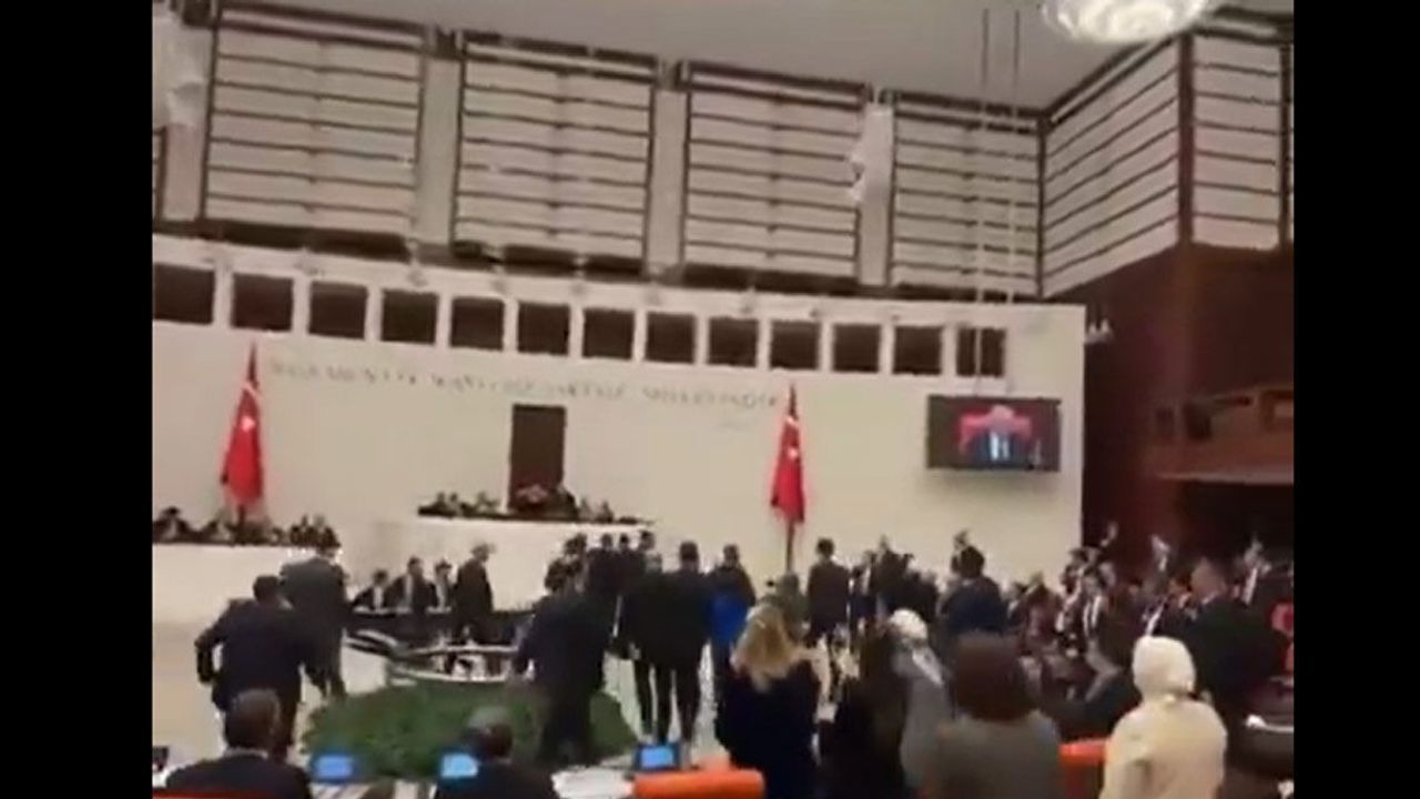 CHP Grup Başkanvekili Murat Emir ve CHP'li milletvekilleri ellerinde dövizlerle ayağa kalkarak, en düşük emekli maaşının 20 bin lira olmasını protesto etti. CHP'lilere AKP'liler tarafından müdahale edildi. Gerginliğin gerekçesinin bir mezar taşı figürü olduğu belirtildi.