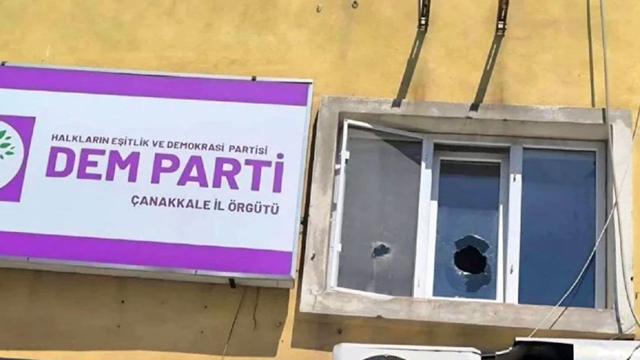 Çanakkale'de DEM Parti İl Başkanlığı binasına saldırı gerçekleştirildi. Edinilen bilgiye göre; içeride toplantı gerçekleştirildiği sırada, il binası önüne gelen beyaz şapkalı bir şahıs elindeki iki büyük taşla camları kırdı.