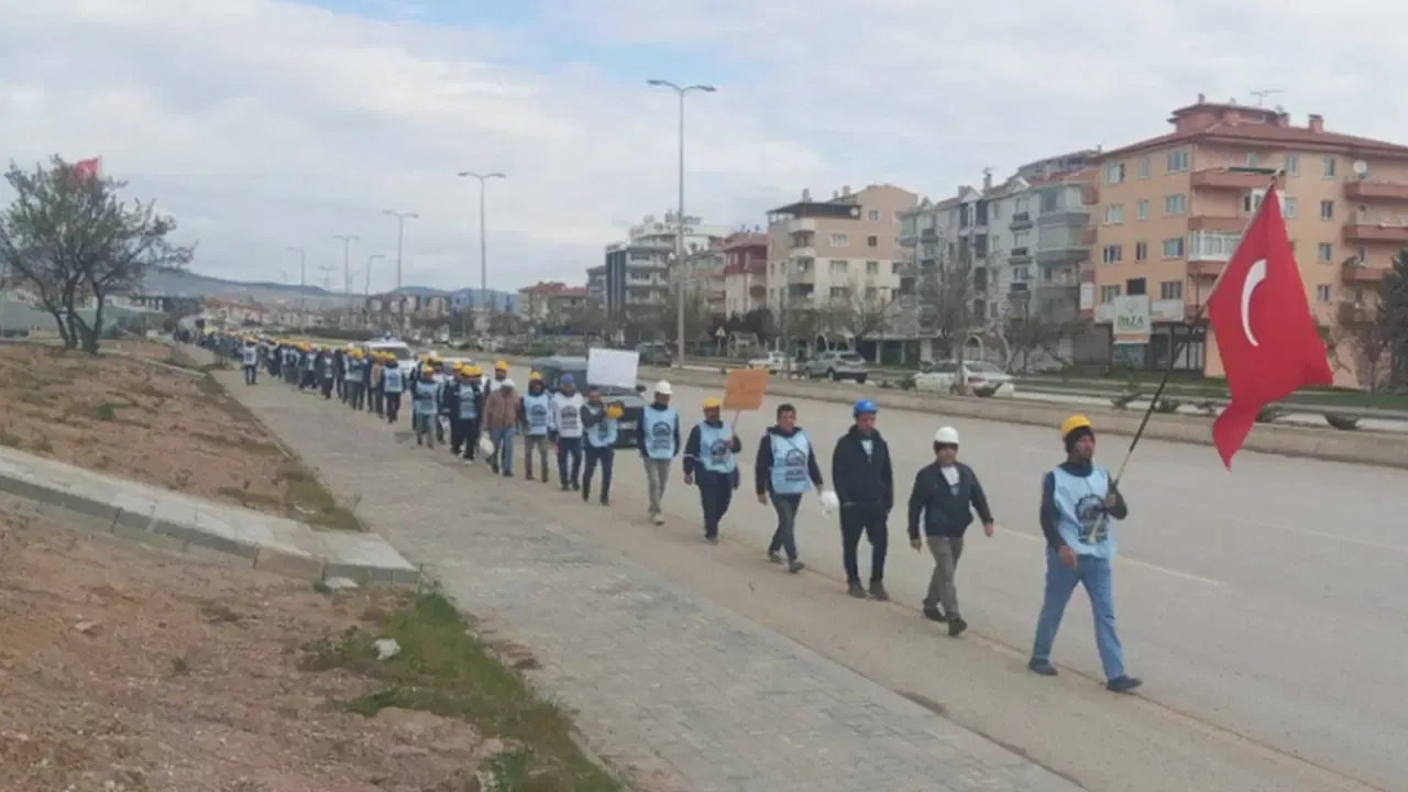 Eskişehir’de faaliyet gösteren Doruk Madencilik’te çalışan, Bağımsız Maden-İş Sendikası üyesi işçiler, ücret ve tazminatlarının ödenmesi talebiyle başlattıkları yürüyüşü sürdürüyor. Ankara şehir merkezine yaklaşan işçiler Yenikent’e ulaştı.