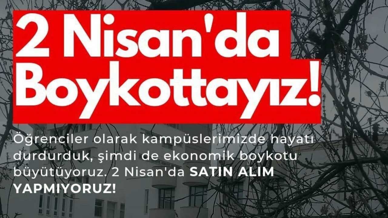 CHP’nin ilan ettiği ve toplumda büyük karşılık bulan boykot çağrısı etkisini sürdürüyor. Bir çağrı da halihazırda kampüslerde dersleri boykot eden üniversite öğrencilerinden geldi. Öğrenciler, 2 Nisan günü alım satım yapmayarak ekonomik boykot gerçekleştirecek.