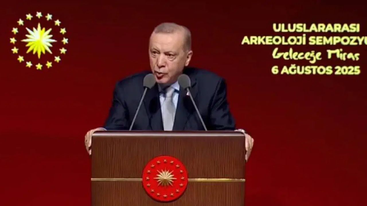 Erdoğan, "Anadolu, insanlığın tüm serencamını yansıtan bir açık hava müzesidir. Bu toprakların her bir katmanı, bu katmanlarda gün yüzüne çıkarılan her bir eser, sizi tarihin en kadim noktalarına götürür" ifadelerini kullandı.