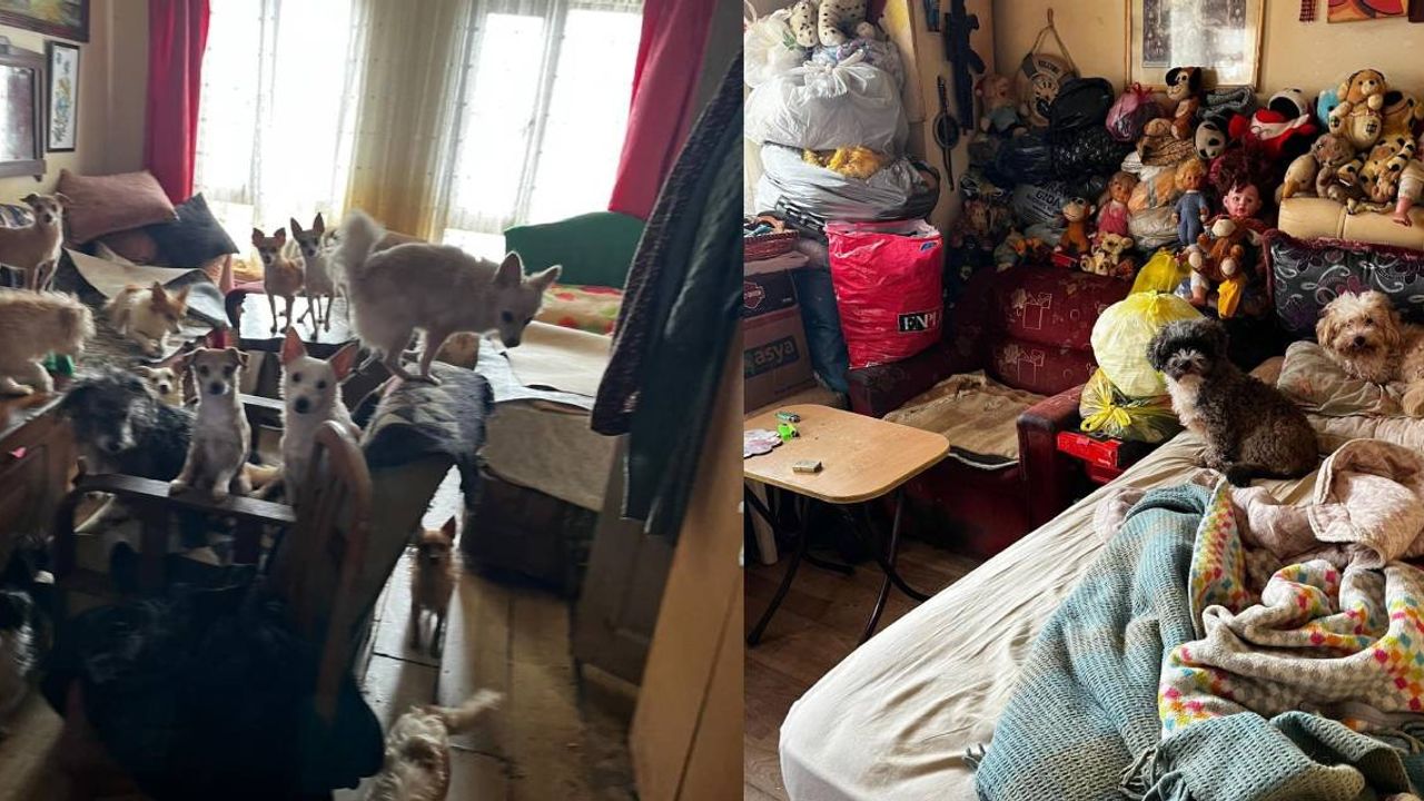 Evde yapılan incelemede, 38 köpek ve 17 kedinin aç bir şekilde hijyenik olmayan bir ortamda tutulduğu ortaya çıktı.