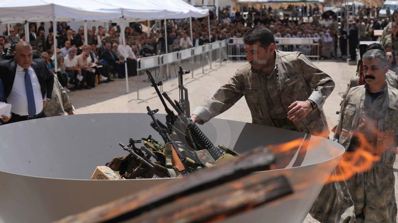 Terör örgütü PKK’nın beklenen sembolik silah bırakma töreni gerçekleşti. Bir grup PKK üyesi Irak Kürt Bölgesel Yönetimi’nde silah bıraktı.