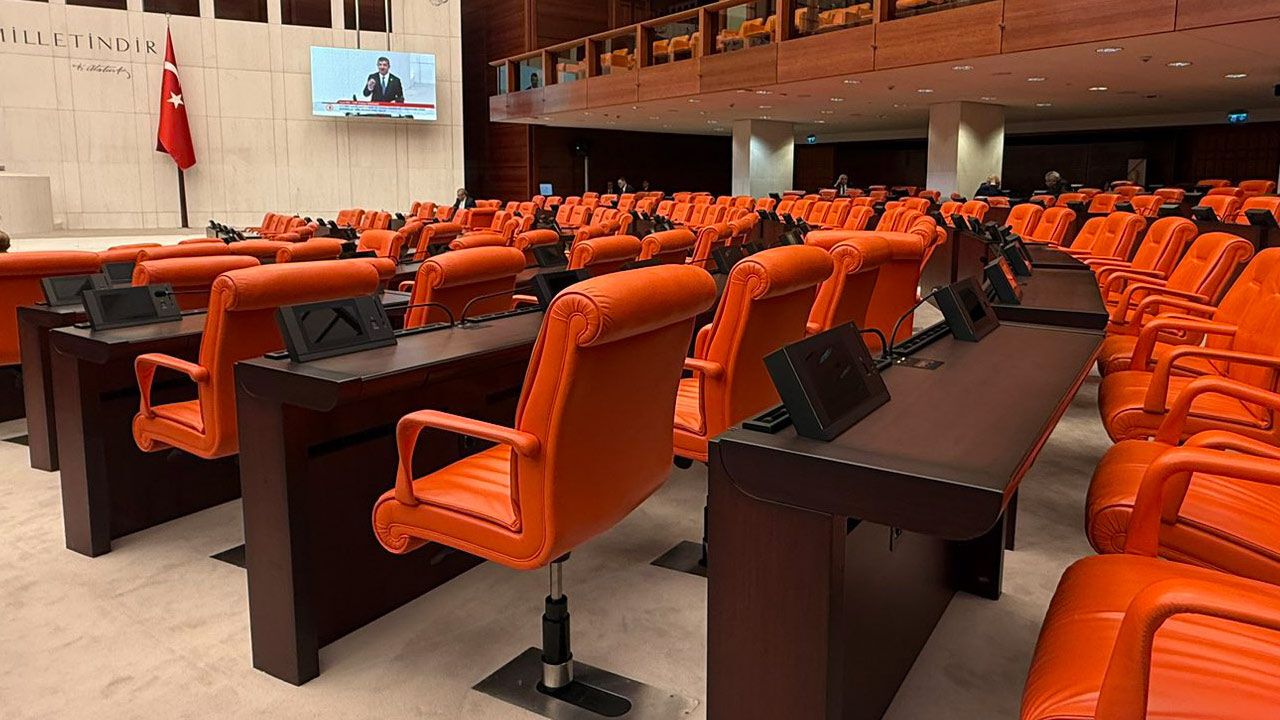 "TBMM Genel Kurulu’ndan bir kare. 212 sıra sayılı kanun görüşülüyor. Ancak AK Parti Grubu’ndan neredeyse hiç kimse yok. Salon bomboş.