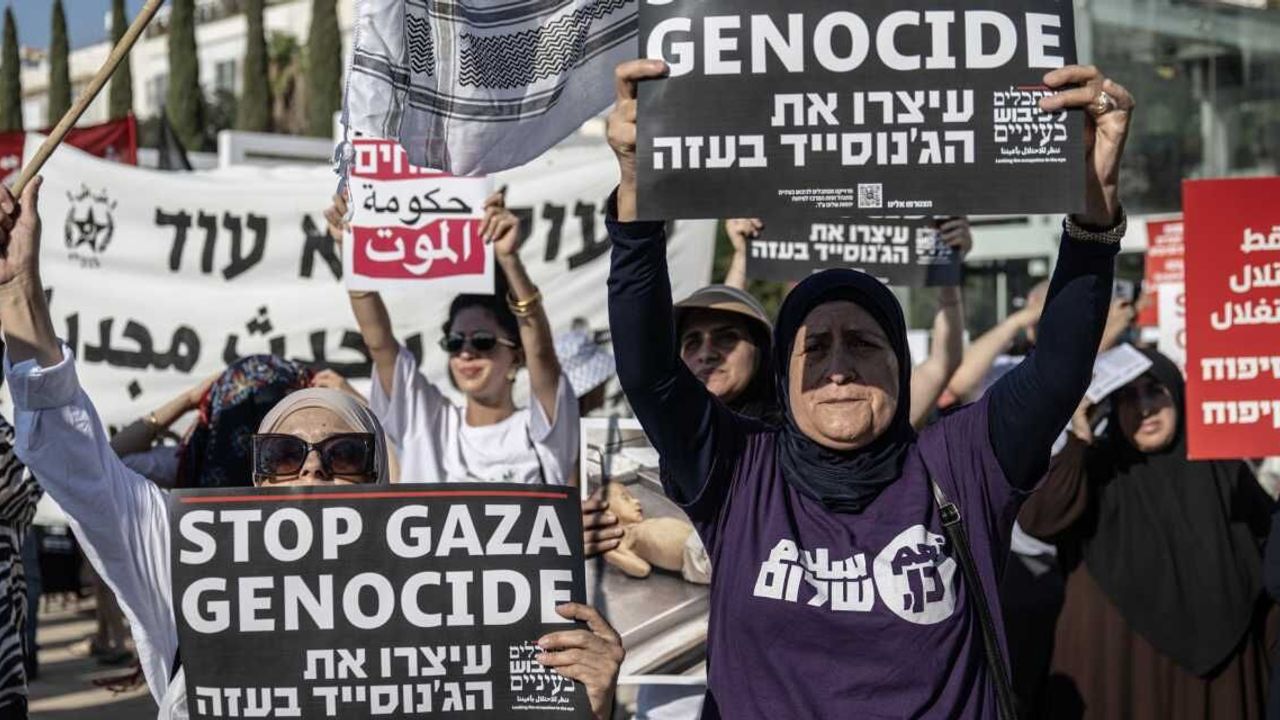 Tel Aviv'deki sembolik Habima Meydanı'nda toplanan yaklaşık 2 bin gösterici, "Soykırımı durdurun", "Gazze'den Cenin'e çocukları öldürmeyin", "Açlık savaş suçu bunu engelleyin" yazılı pankartlar taşıdı.