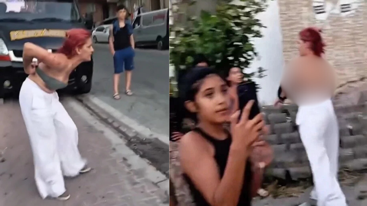 Üzerindeki kıyafetleri çıkarmaya çalışan genç kadına yakınları engel oldu.