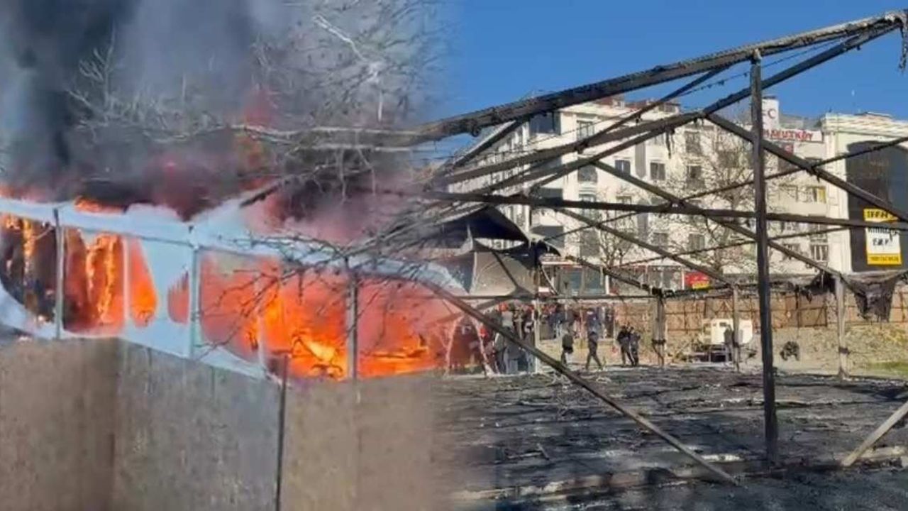 İftar çadırını saran alevler, itfaiye ekipleri tarafından yapılan çalışmalar sonucunda söndürüldü.
