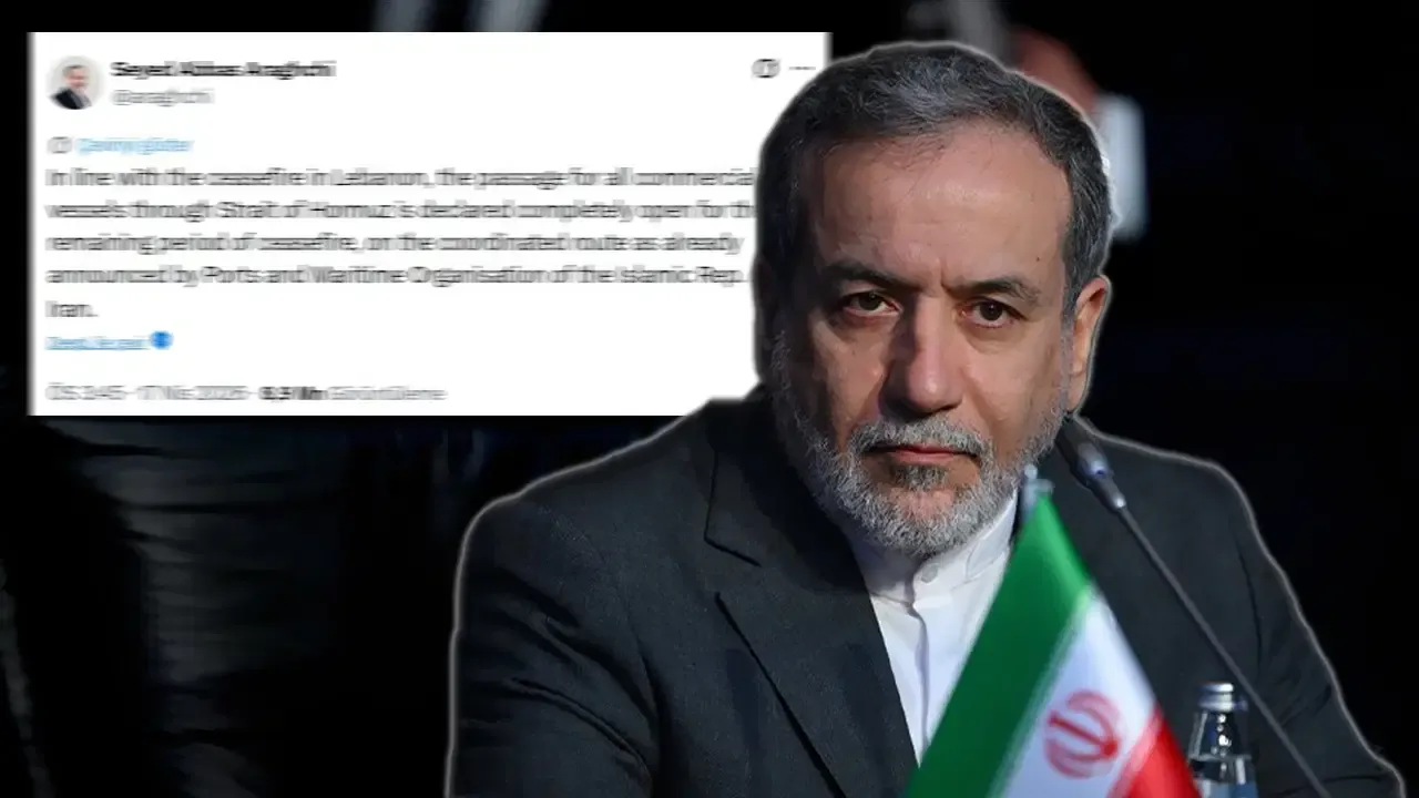 Arakçi, X platformunda yaptığı açıklamada, Lübnan’da ateşkesin yürürlüğe girmesiyle birlikte Hürmüz Boğazı’nın yeniden açıldığını duyurdu.