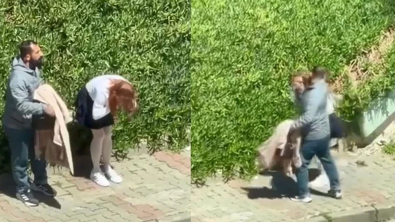 Kadın aldığı yumruk darbeleriyle ağlarken bir süre sonra da kendine saldıran kişiye vurmaya başladı. Bu sırada yoldan geçen bir motokurye duruma müdahale etmeye çalıştı; ancak bir süre sonra caddeden ayrıldı.