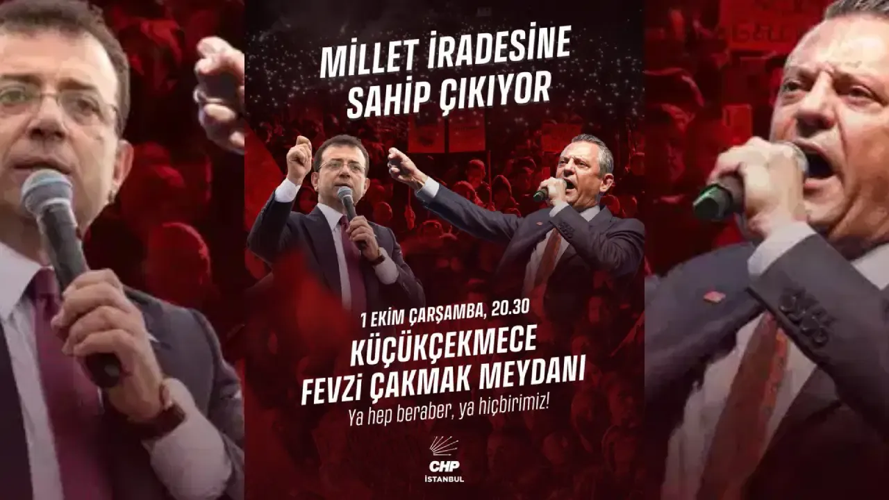 CHP'nin, "Millet İradesine Sahip Çıkıyor" mitinglerinin 58'incisinin tarih ve adresi belli oldu. CHP'den paylaşılan afişe göre miting, 1 Ekim Çarşamba günü İstanbul’un Küçükçekmece ilçesinde gerçekleştirilecek.