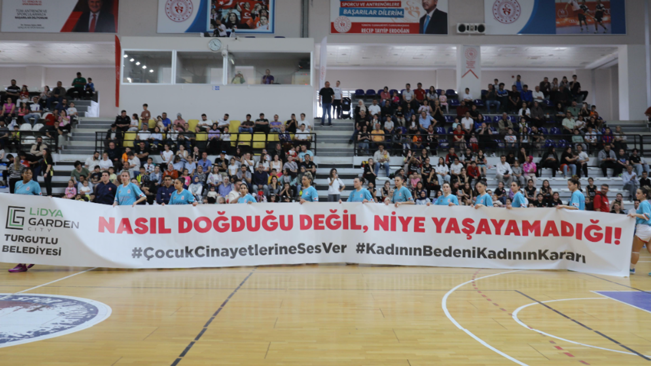 Lidya Garden City Turgutlu Belediyespor ile Kırklareli Belediyesi Kırklareli Fen Bilimleri ile oynadığı karşılaşma öncesinde, "Nasıl doğduğu değil, niye yaşayamadığı!.. Çocuk cinayetlerine ses ver - kadının bedeni kadının kararı” yazılı pankartla tribünlerdeki yerini aldı.