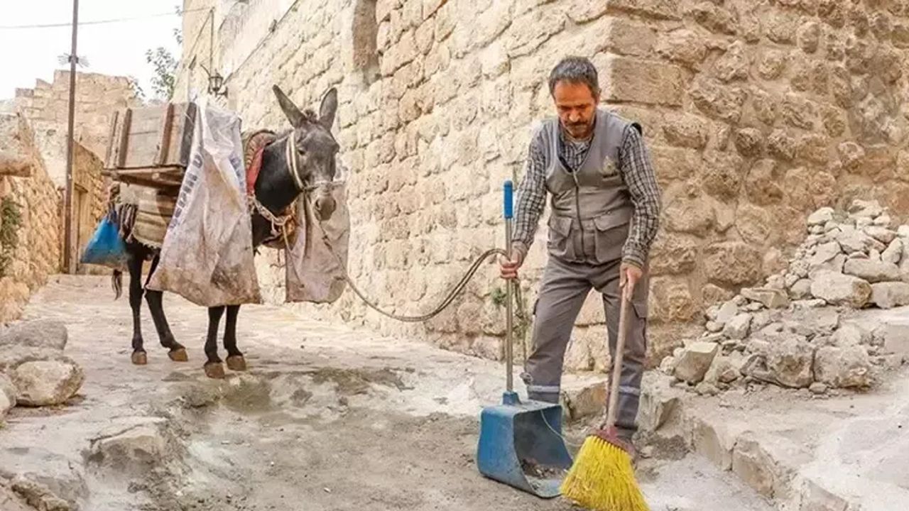 Güneydoğu Anadolu Bölgesi'nin en önemli turizm merkezlerinden biri olan Mardin'in araç girmeyen dar ve merdivenli sokaklarındaki çöpler, yıllardır Artuklu Belediyesi'nin kadrolu eşekleriyle toplanıyor. Sabahın erken saatlerinde, başlarında 1 belediye personeli ile başlanan ve saat 10.00'a kadar süren çöp toplama işlemi 5 saatlik dinlenme ve yemek molasının ardından saat 17.00'ye kadar devam ediyor. İş bittikten sonra belediyenin kendileri için oluşturduğu tarihi alanda kalan eşekler, ortalama 7 yıl çalıştırıldıktan sonra emekli ediliyor. Emekliye ayrılan eşekler, hayatlarının geriye kalan kısmını yine belediyeye ait barınakta tamamlıyor.