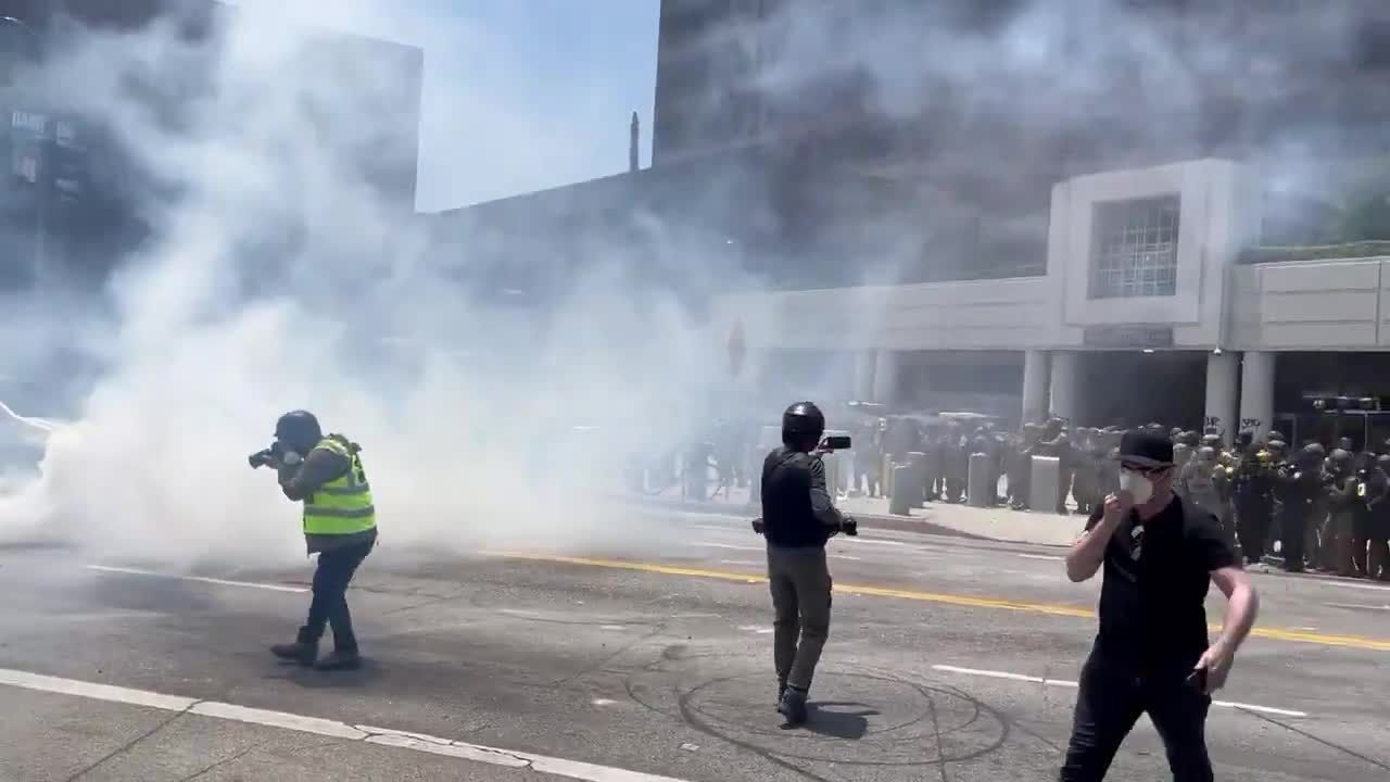 Daha önce, yaklaşık bir düzine Ulusal Muhafız, İç Güvenlik Bakanlığı personeli ile birlikte, Los Angeles şehir merkezindeki bir federal binanın dışındaki bir grup göstericiyi geri püskürtmüştü. ABD Kuzey Komutanlığı, Kaliforniya Ulusal Muhafızları'nın 300 üyesinin, Los Angeles bölgesindeki üç noktaya konuşlandırıldığını açıkladı. Görevlerinin, “federal personeli ve mülkleri korumakla sınırlı” olarak belirtildi.