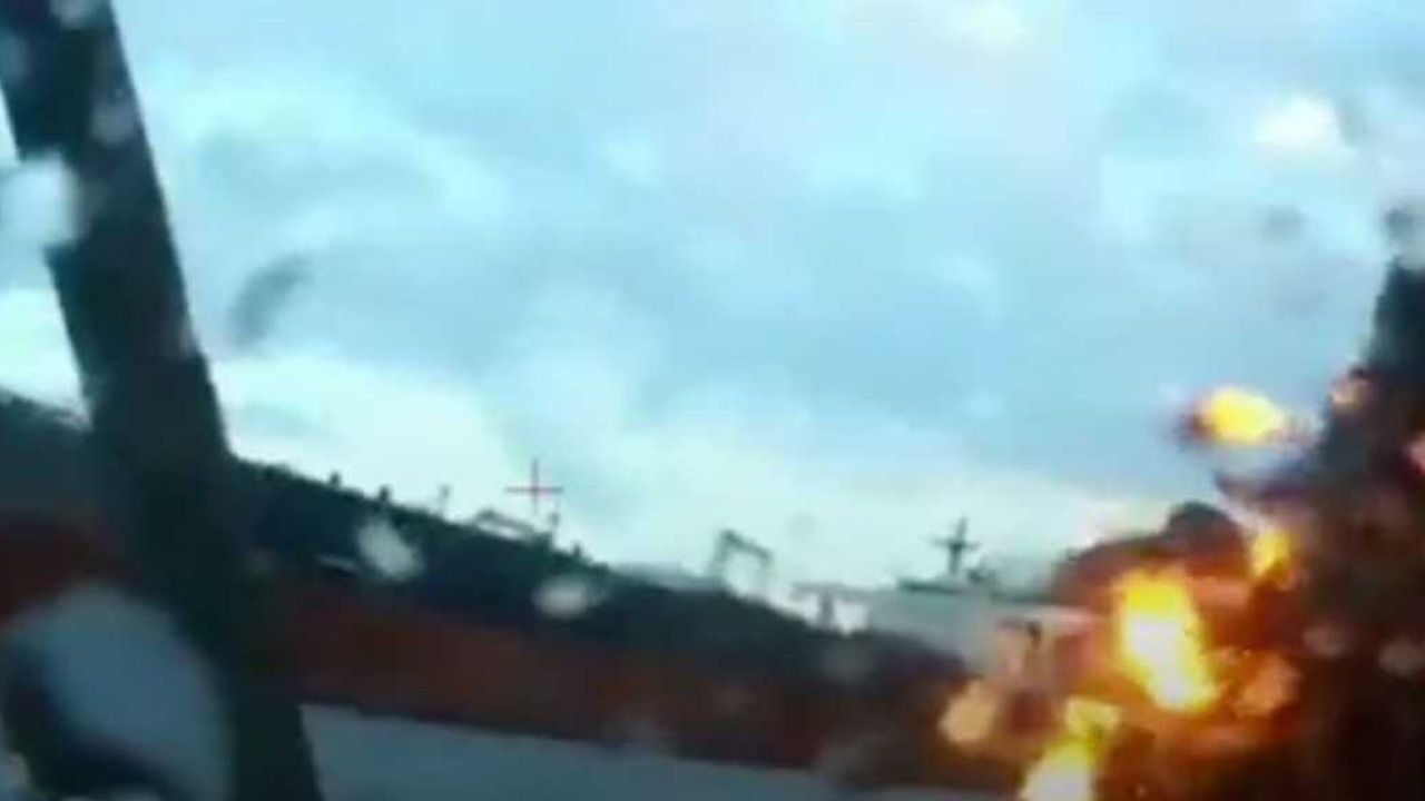Ukrayna'ya ait insansız deniz araçları ile vurulan tankerlerin görüntüleri servis edildi. Görüntülerde saldırı botunun tankere kıç tarafından çarptığı görülürken yükselen alevler ve sonrasında tankeri saran yangın saldırının şiddetini ortaya koydu.