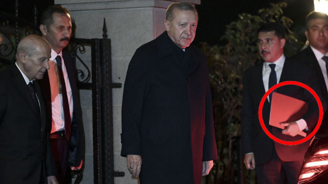 Görüşme yaklaşık 40 dakika sürdü. Toplantının ardından açıklama yapılmazken, bu kez dikkatler Cumhurbaşkanı Erdoğan’ın Özel Kalem Müdürü Prof. Dr. Hasan Doğan’ın taşıdığı kırmızı dosyaya yöneldi.