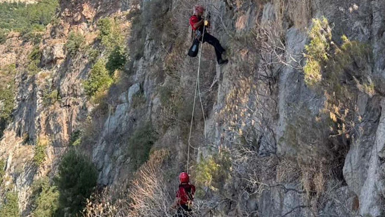 Ölüdeniz Mahallesi'ndeki Kelebekler Vadisi’nin güney bloğuna gelen Atasu, yaklaşık 200 metre yükseklikte kayalıklarda mahsur kaldı. Saat 14.30 sıralarında yapılan ihbar üzerine bölgeye Jandarma Arama Kurtarma (JAK) ekipleri sevk edildi. JAK ekibi halatlar yardımıyla kayalıklardaki Atasu'ya ulaştı.