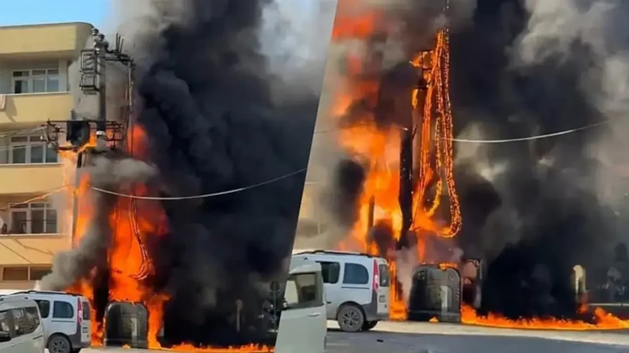Trafo yakınındaki iki otomobil alev aldı, yandı kullanılamaz hale geldi.