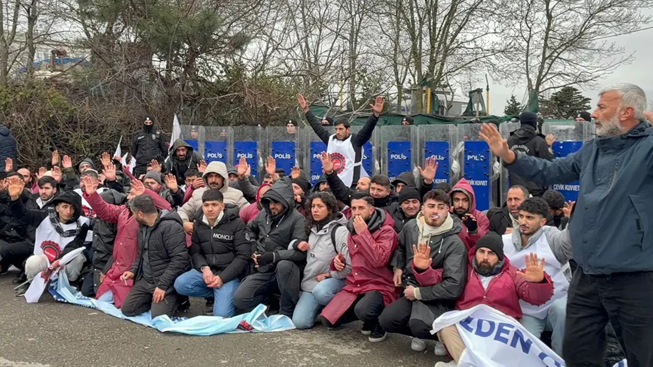 Yaklaşık 100 işçi, aralarında sendika yöneticilerinin de bulunduğu grup ters kelepçeyle gözaltına alınarak İstanbul Fatih'teki Vatan Emniyet'e götürüldü.