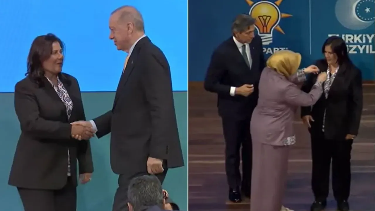 Özlem Çerçioğlu’na AKP rozetini Erdoğan’ın takması bekleniyordu, ancak Erdoğan takmadı.