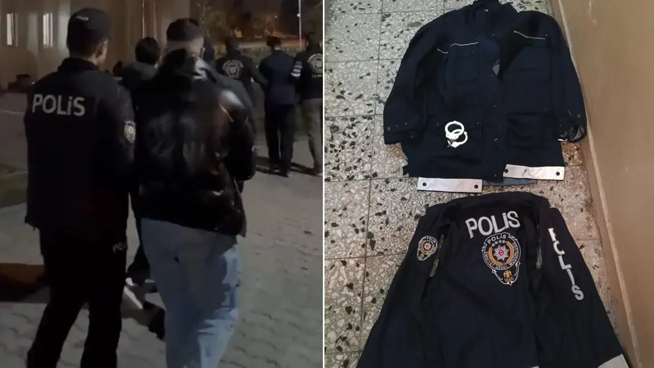 İhbar üzerine harekete geçen polis ekipleri şüphelilerin polis yeleği giydiği, üniforma kullandığı ve yanlarında kelepçe bulundurduğu tespit etti.