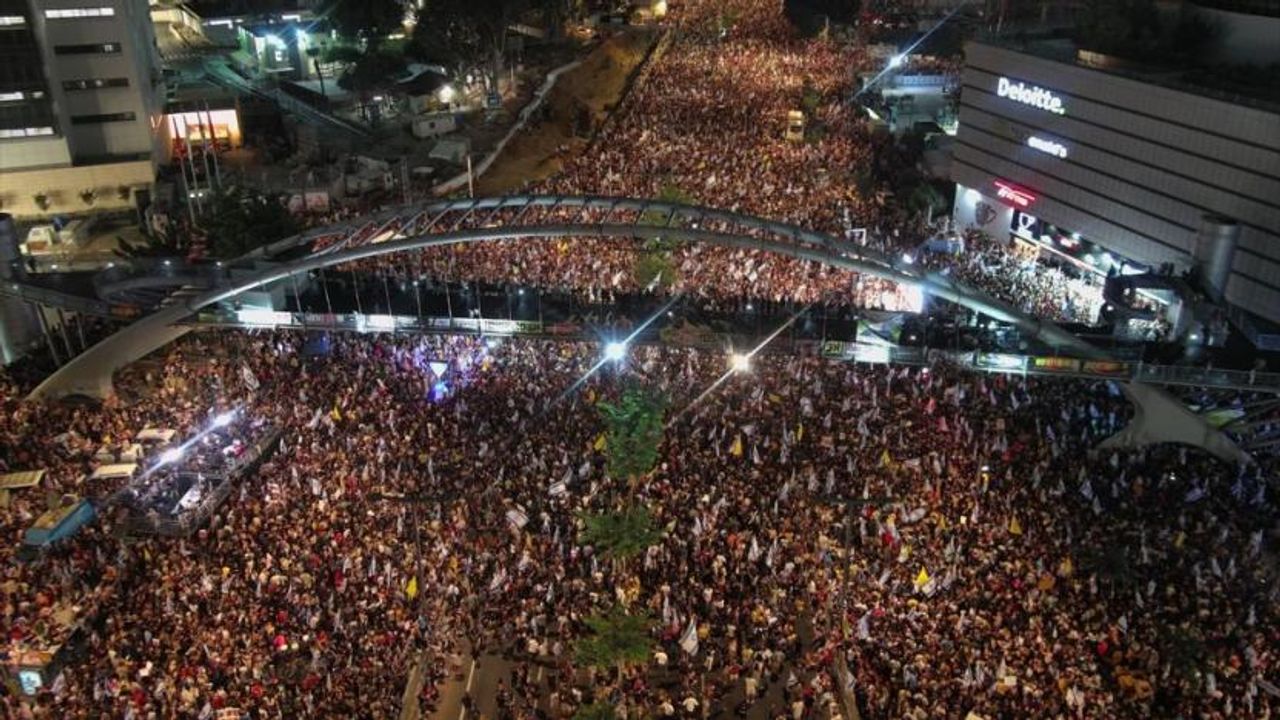 İsrailliler, Gazze Şeridi'nde ateşkes ve esir takasına yanaşmamakla suçladıkları Benyamin Netanyahu liderliğindeki hükümetten, kapsamlı bir anlaşma talebiyle İran'a saldırılar sonrası ilk kez Tel Aviv'de protesto düzenledi.