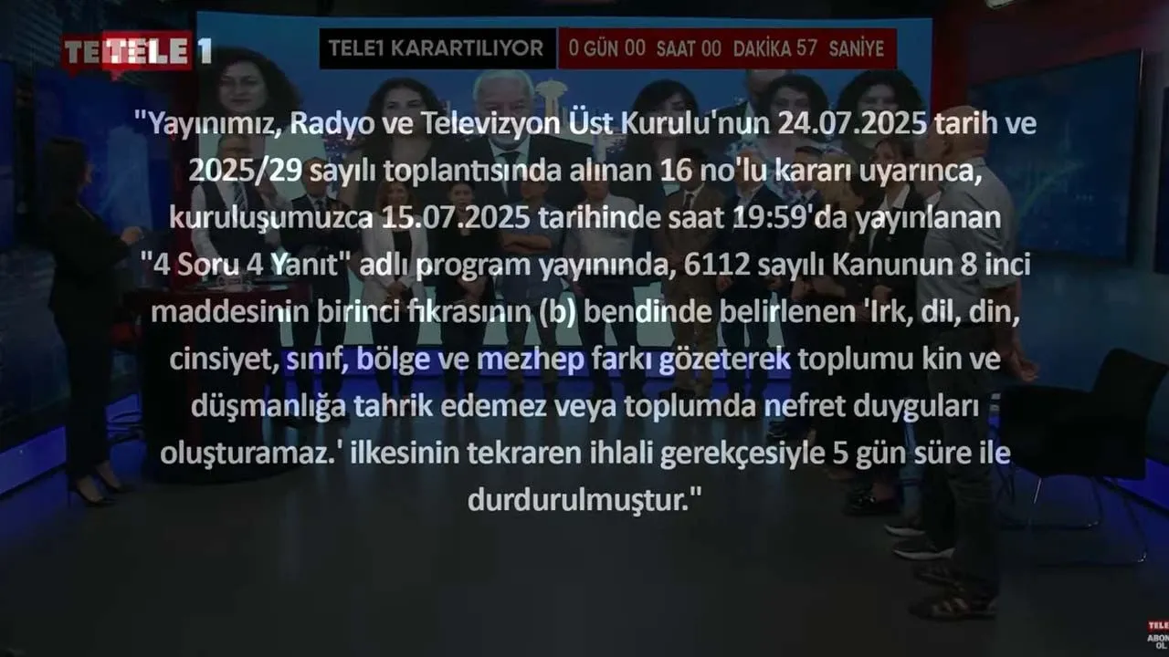Radyo ve Televizyon Üst Kurulu (RTÜK) TELE 1’e “4 Soru 4 Yanıt” programında Merdan Yanardağ’ın “15 Temmuz İslamcı bir darbe girişimiydi. Bu darbenin temel sorumlusu AKP iktidarıdır” değerlendirmeleri nedeniyle “Toplumu kin ve düşmanlığa” tahrik iddiasıyla 5 gün ekran karartma ve yüzde 5 idari para cezası vermişti. RTÜK'ün cezası siyasilerle beraber toplum büyük kesiminin tepkisini çekmişti.