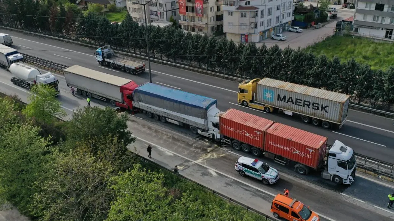 TEM Otoyolu'nda 6 TIR'ın karıştığı zincirleme kaza meydana geldi. Kazada ölen veya yaralanan olmadığı öğrenilirken, kaza nedeniyle otoyolun Ankara yönünde ulaşım aksadı.
