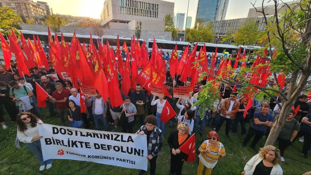 TKP Ankara İl Başkanı Banu Karahan, burada yaptığı açıklamada, "Ülkeyi ABD, İngiltere ve İsrail’le birlikte yeni Osmanlıcı heveslerle bataklığa sürükleyen AKP iktidarı, çıkışı yine ABD’de arıyor. Erdoğan’ın ABD ziyareti ve Trump ile görüşmesi büyük bir başarı olarak pazarlanıyor. Ama biz bunun bu ülke için ne anlama geldiğini biliyoruz" diye konuştu.