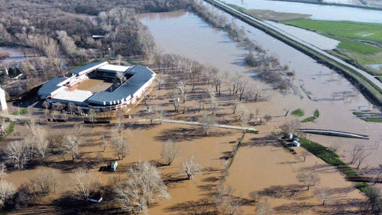 Kırmızı uyarının verildiği Tunca Nehri dün taştı. Taşkın nedeniyle tarihi Kırkpınar Yağlı Güreşleri'nin yapıldığı Sarayiçi, kısmen su altında kaldı. Bu sabah saatlerinden itibaren Sarayiçi'ndeki suyun geniş alana yayıldığı görüldü.