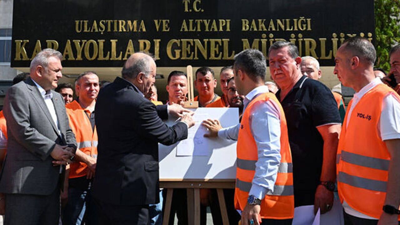 Yaklaşık 600 bin kamu işçisini ilgilendiren toplu iş sözleşmesi görüşmelerinden sonuç alınamaması üzerine, Türkiye İşçi Sendikaları Konfederasyonu’na (TÜRK-İŞ) bağlı Yol-İş Sendikası, grev kararını Karayolları Genel Müdürlüğü önüne astı.