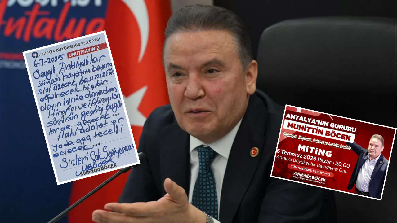 "Sevgili Antalyalılar, Siyasi hayatım boyunca sizi üzecek, başınızı öne eğdirecek hiçbir olayın içinde olmadım. İtirafçı ve iftiracıların sözünün geçtiği bugünler de geçecek... İlahi adalet er ya da geç tecelli edecek... Sizleri çok seviyorum."