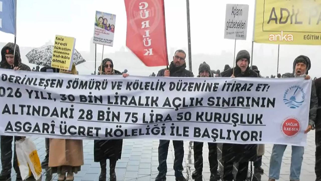 Açlık ve yoksulluk her geçen yıl bir önceki yıla göre daha da derinleştiği; sömürü ve kölelik düzeni daha bir pekiştiği için meydanlardayız! İnsan haysiyet ve özgürlüğünü hedef alan, insan onurunu çiğneyen bu harâmi düzene karşı yılın bütün günlerinde itirazlarımızı sürdürmeye devam edeceğiz! Susmayacağız! Geçtiğimiz hafta Asgarî Ücret Tespit Komisyonunun kararıyla 2026 yılı için geçerli olacak Asgarî Ücret, 28 bin 75 lira 50 kuruş olarak ilan edildi. Böylece bir önceki yıla göre sadece yüzde 27’lik bir artış yapılmış oldu. TÜRK-İŞ araştırmalarına göre 4 kişilik bir ailenin yoksulluk sınırı 98 bin 188 lira, açlık sınırı ise 30 bin 143 lira olarak tespit edilmiştir. İşçiler yeni ücretlerini ancak 31 Ocak 2026’da alacak. O zamana kadar açlık sınırının nerede olacağını düşünmek bile istemiyoruz.”