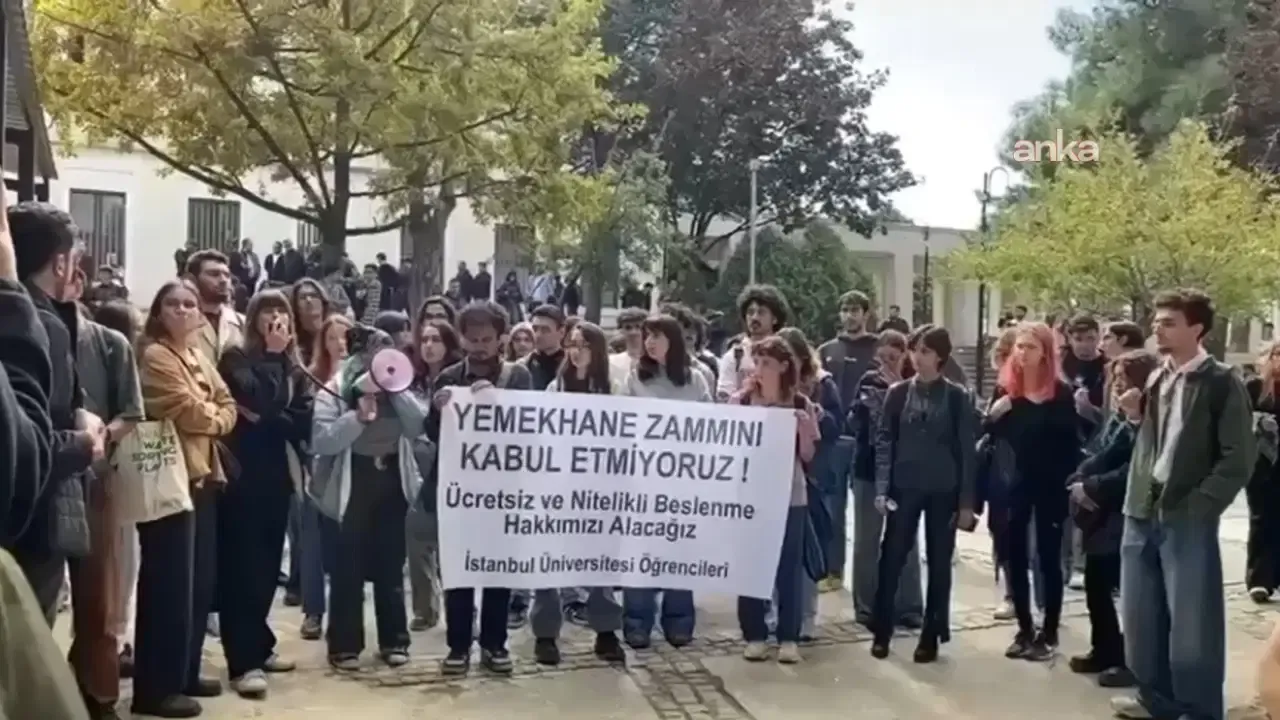 İstanbul Üniversitesi'nde öğrenciler, yemekhane ücretlerine yapılan zammı kampüs içinde yürüyüş ve basın açıklamasıyla protesto etti. Üniversitenin bahçesinde kulüp stantlarının bulunduğu alanda toplanan öğrenciler, havuzlu bahçe önünden yürüyüş çağrısı yapmak istedi. Ancak üniversite güvenliği, öğrencilerin çağrısını engelledi ve megafonlarına el koymak istedi. Bir öğrenci, yaşanan arbedede megafonu elinden alınmaya çalışılırken şöyle konuştu: