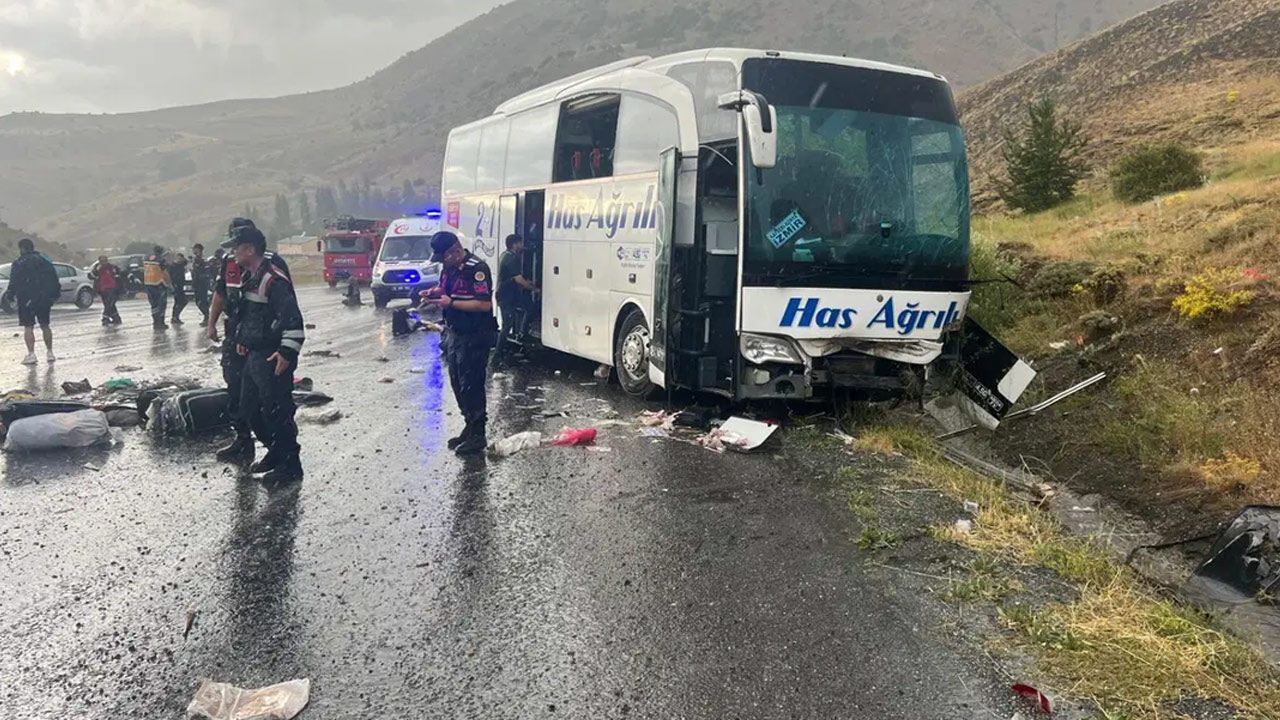 Sürücüsü ve plakası henüz öğrenilemeyen, Has Ağrılı Turizm'e ait yolcu otobüsü, Sivas-Erzincan kara yolunun Kuzköy mevkisinde dağın yamacına çarptı.